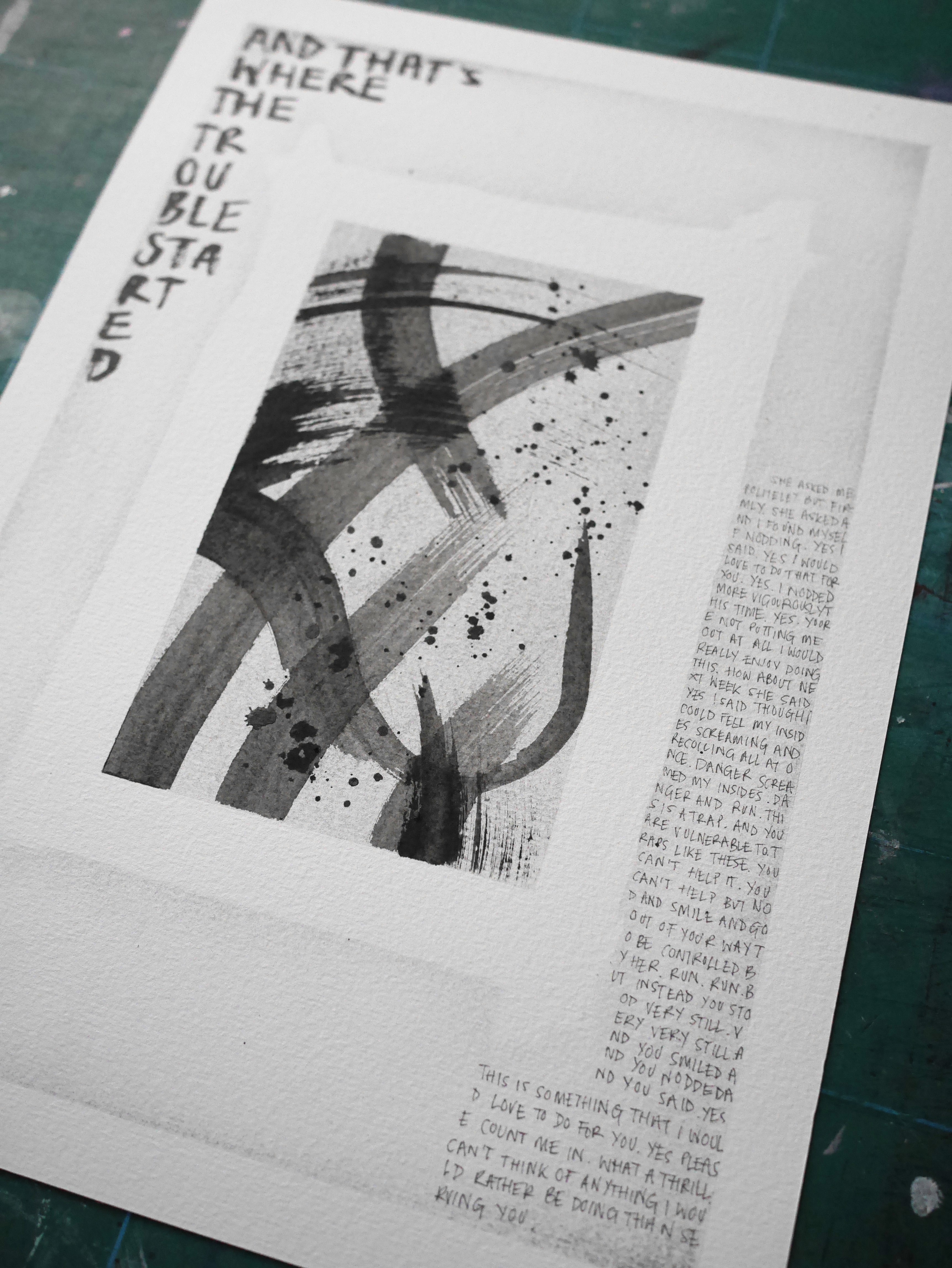 Each piece begins after a short meditation, allowing the mind to clear before ink meets paper. What follows is spontaneous and unfiltered – part letter, part sketch, part confession. The work captures a fleeting moment of emotion, curiosity, or reflection, preserving it in its rawest form.