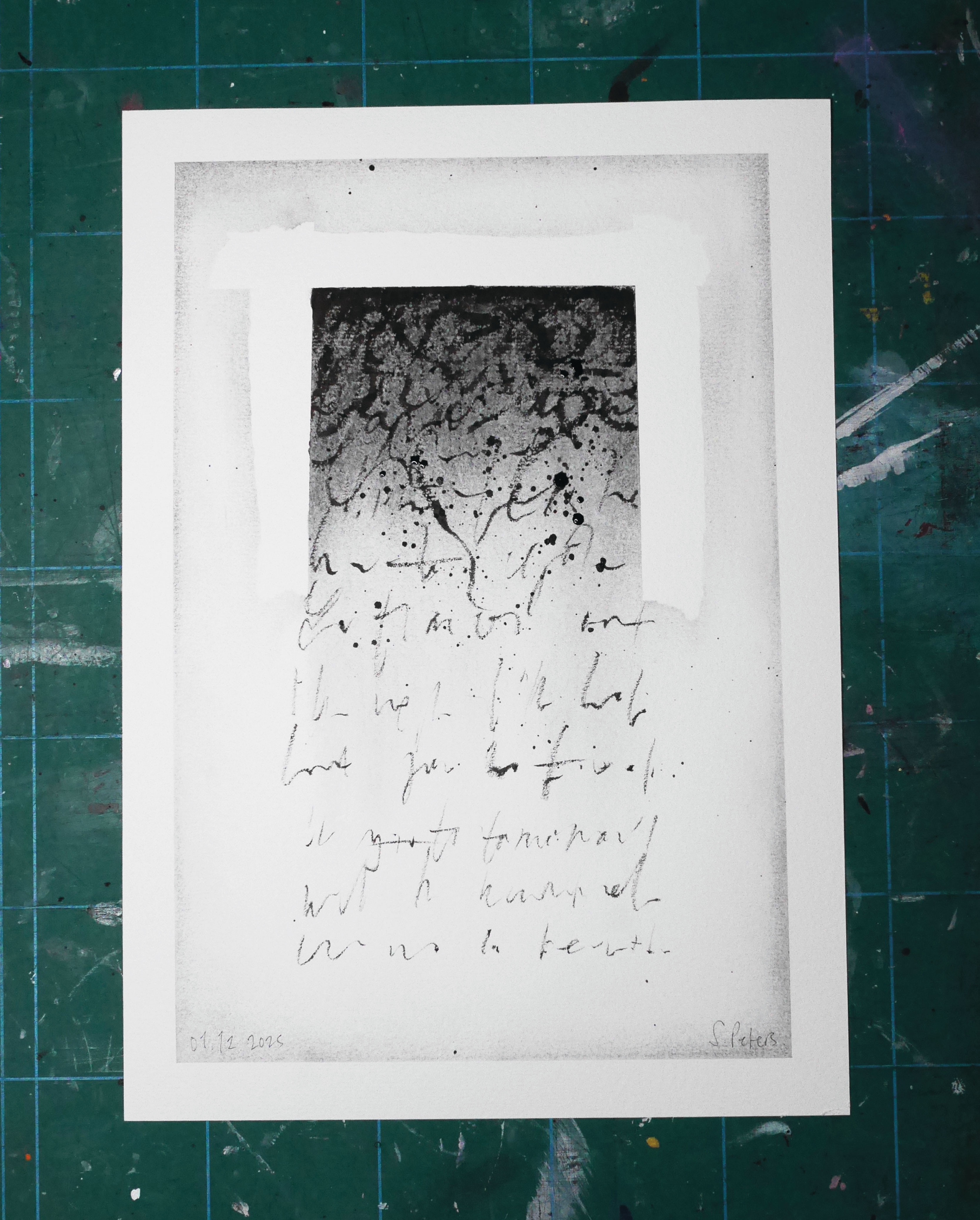 No two pieces are planned, and none are corrected. Torn edges, smudges, and uneven lines are embraced as evidence of the process – reminders that beauty often lives in imperfection.