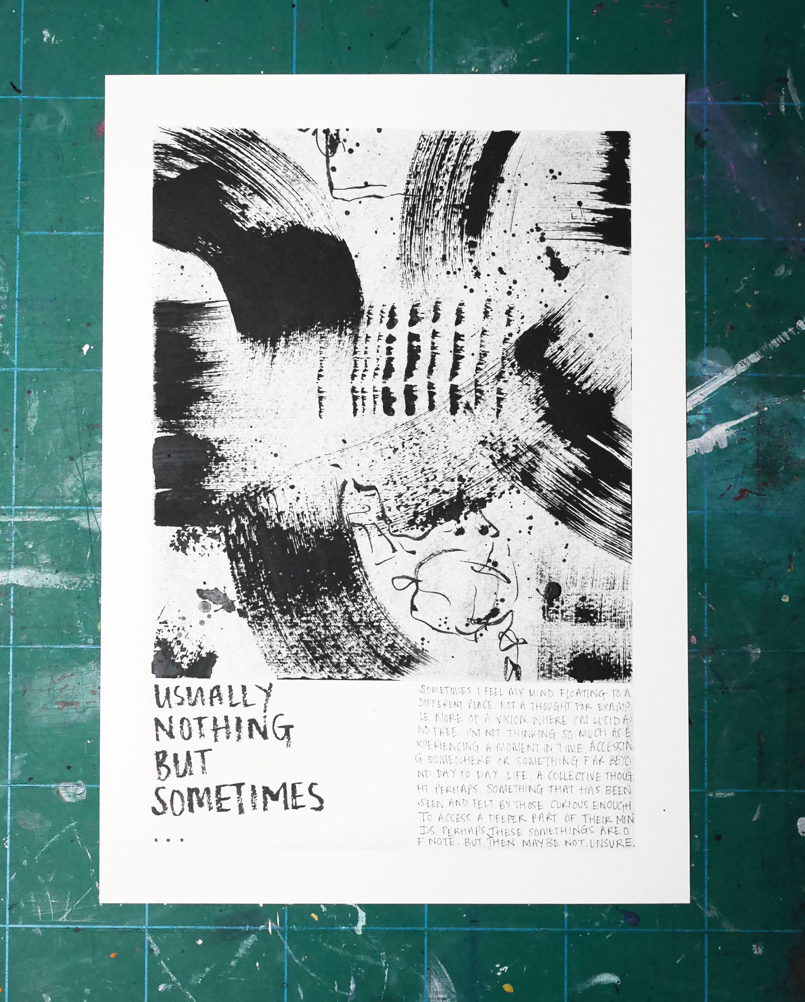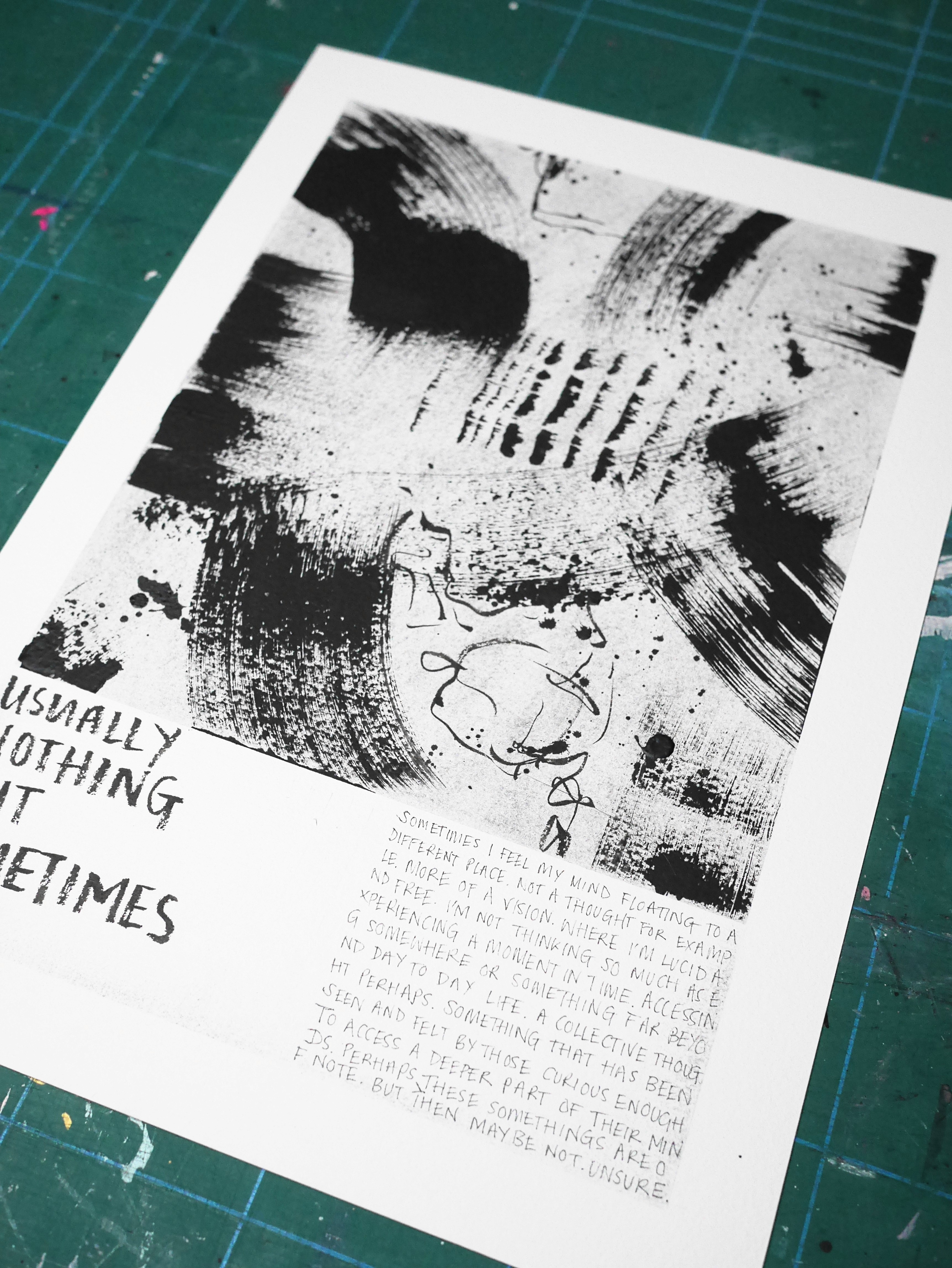 Each piece begins after a short meditation, allowing the mind to clear before ink meets paper. What follows is spontaneous and unfiltered – part letter, part sketch, part confession. The work captures a fleeting moment of emotion, curiosity, or reflection, preserving it in its rawest form.