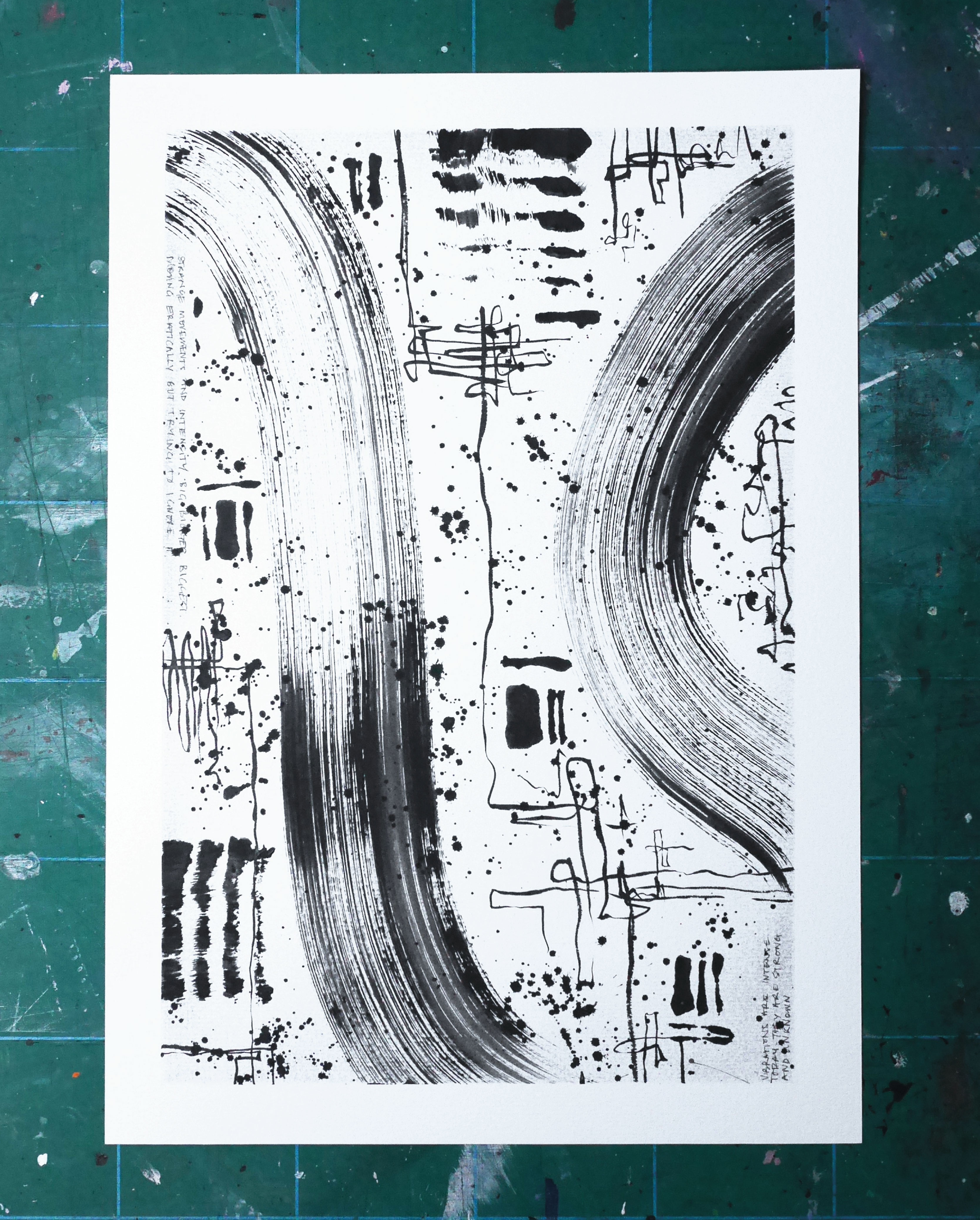 No two pieces are planned, and none are corrected. Torn edges, smudges, and uneven lines are embraced as evidence of the process – reminders that beauty often lives in imperfection.