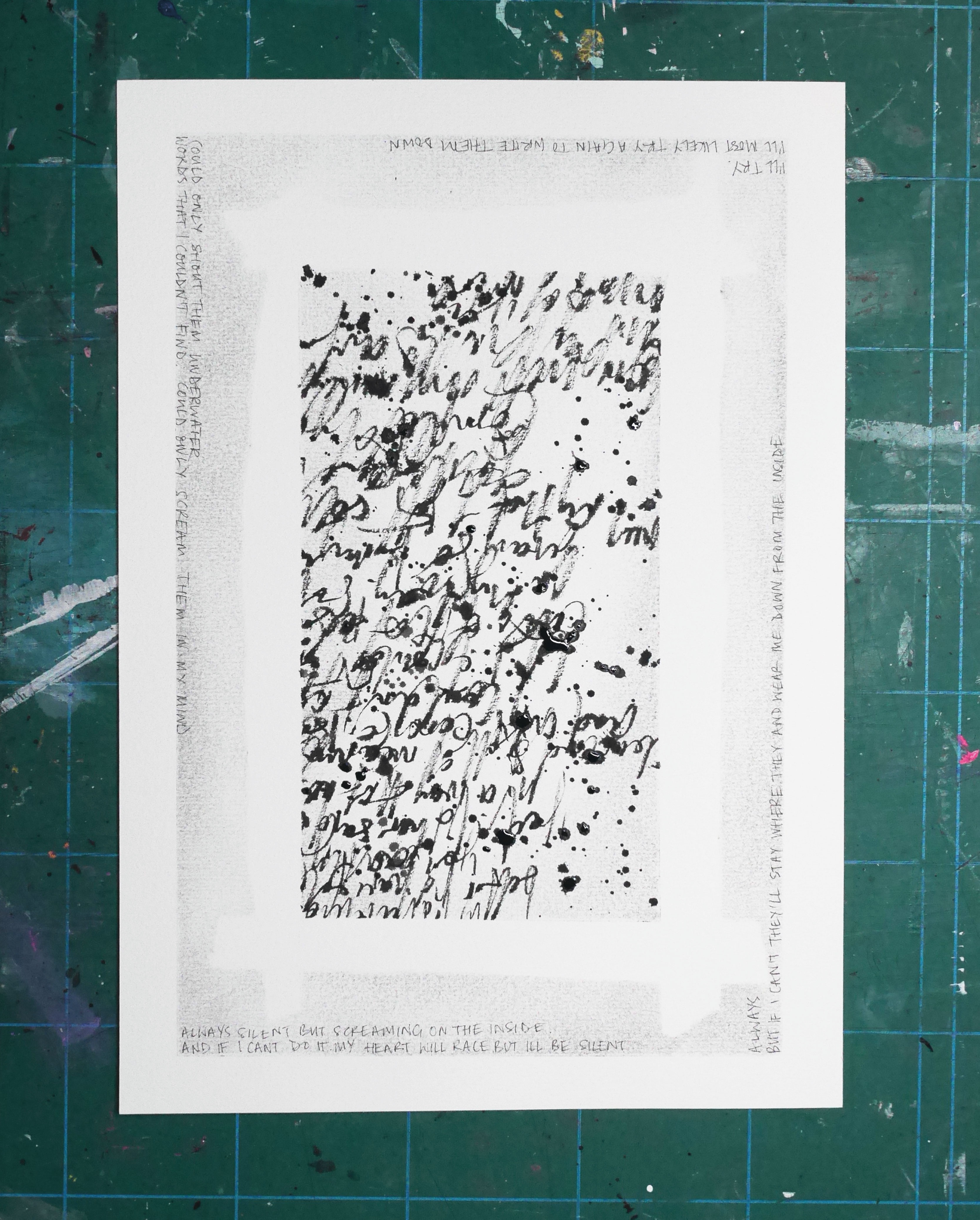 Each piece begins after a short meditation, allowing the mind to clear before ink meets paper. What follows is spontaneous and unfiltered – part letter, part sketch, part confession. The work captures a fleeting moment of emotion, curiosity, or reflection, preserving it in its rawest form.